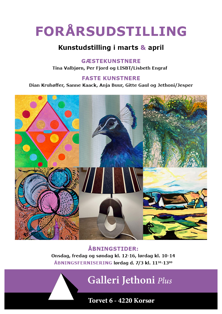 Galleri Jethoni Plus har holdt 1-års fødselsdag, lørdag den 1. februar. Vi havde en fin dag med mange besøgende og deraf en del som vi ikke havde set før. Der blive spist kage af forskelligt slags og snakket og drukket kaffe. Vi er meget taknemmelige for den fine opbakning og tak for gaver.